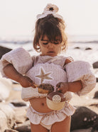 Os nossos "Splashers" - Coletes Flutuantes, são feitos de poliéster reciclado e possuem espuma extra densa e resistente. É 100% ajustável nas costas e proporciona uma estabilidade muito melhor na água do que os coletes normais, graças à fixação dos braços. Desta forma, a criança fica totalmente apoiada e em posição vertical, evitando inclinações e subidas do colete sem necessidade de usar cinta entre as pernas, evitando esse desconforto.