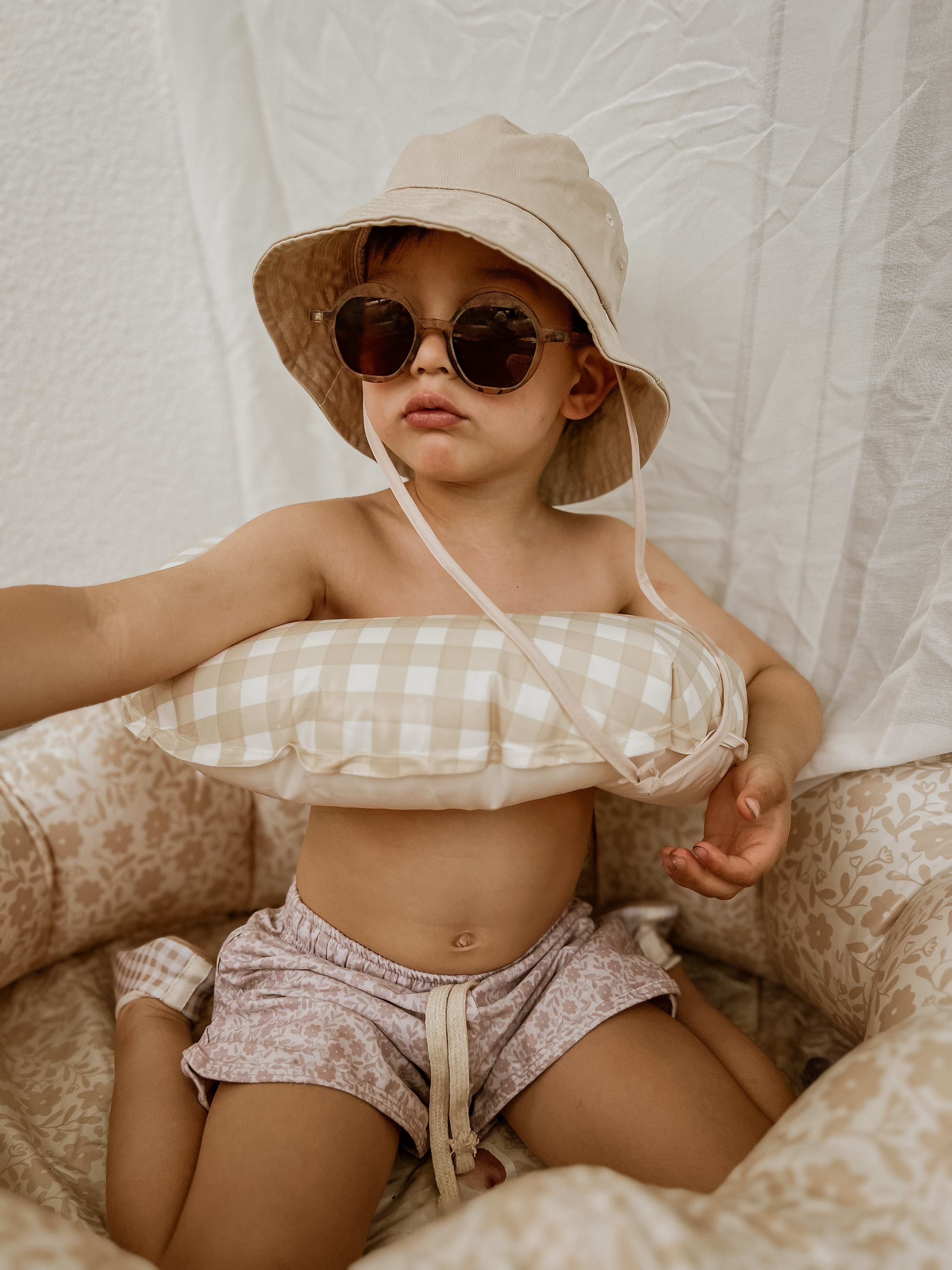 Calções para bebes e crianças A nossa coleção de banho é feita de polyester e poliamida reciclada com proteção UV50+. Todas as peças são forradas para maior conforto e possuem uma ótima elasticidade para não marcar e se comportarem como uma segunda pele. Estão disponíveis dos 12 meses aos 7 anos.