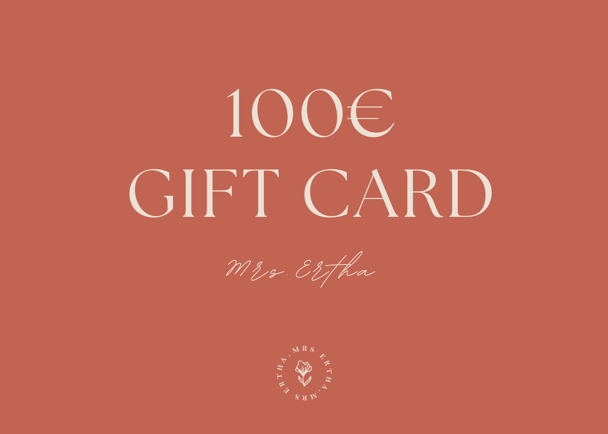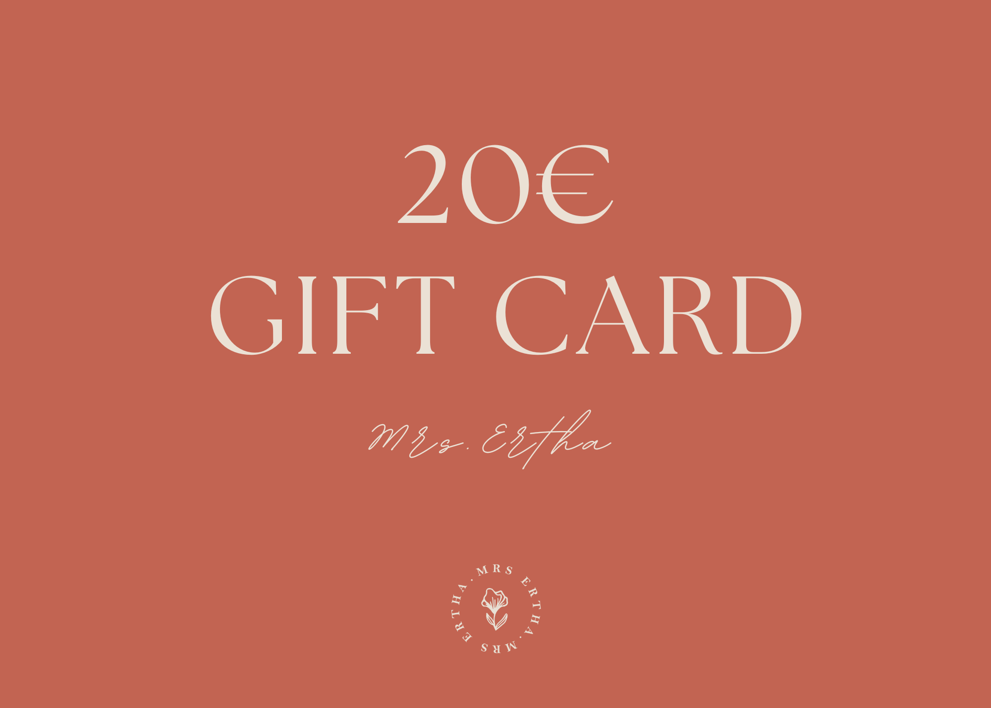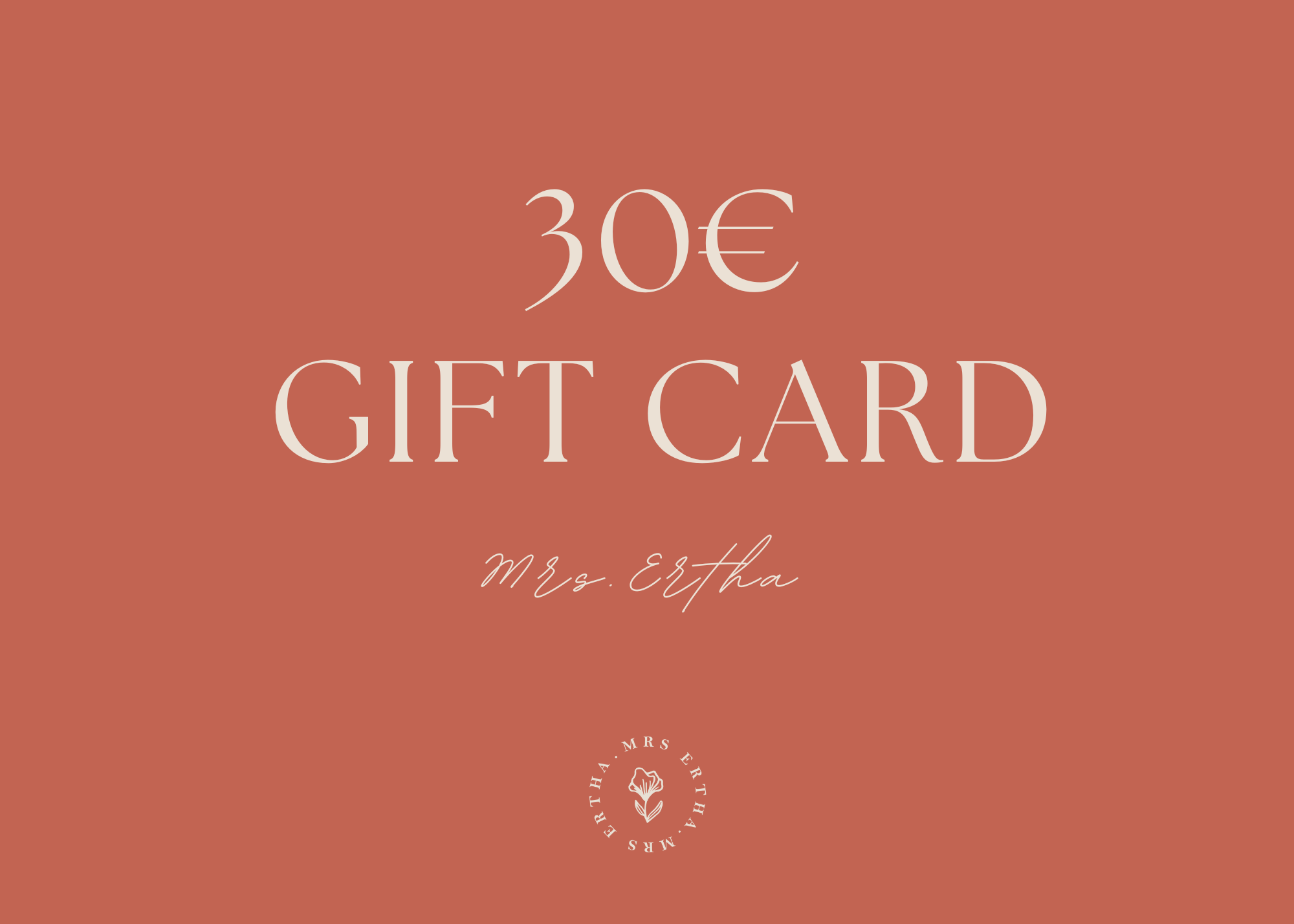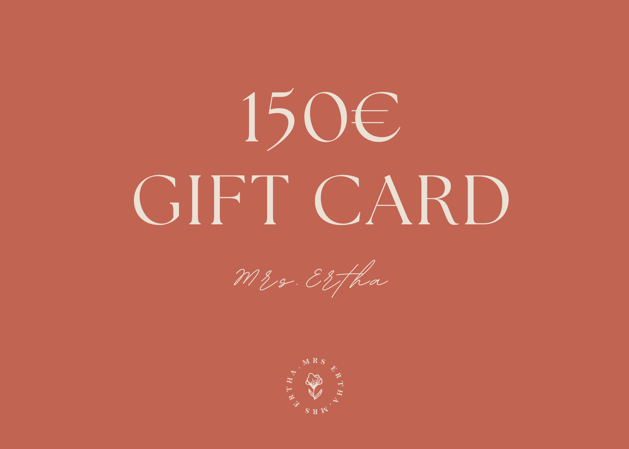 Perfect gift card if you want to give away an item from... Mrs.Ertha But you don't know exactly which one. Offer €20, €30, €50, €100, or €150.