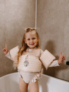 Il costume Ariella, modello bestseller con maniche lunghe per una maggiore protezione, è il più stiloso di questa stagione. Perfetto per i vostri bambini da indossare in estate, con toni neutri e fantasie uniche e irresistibili!