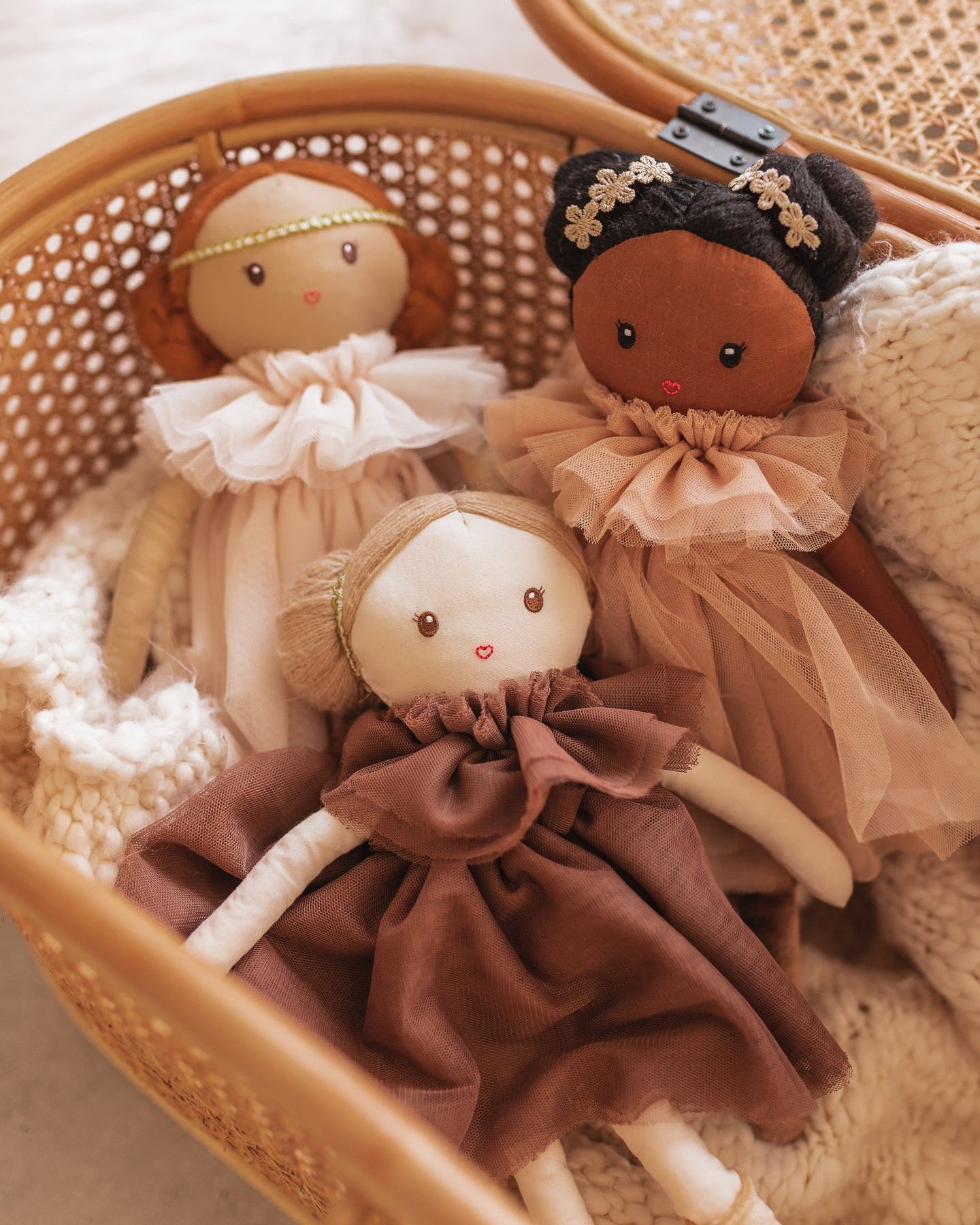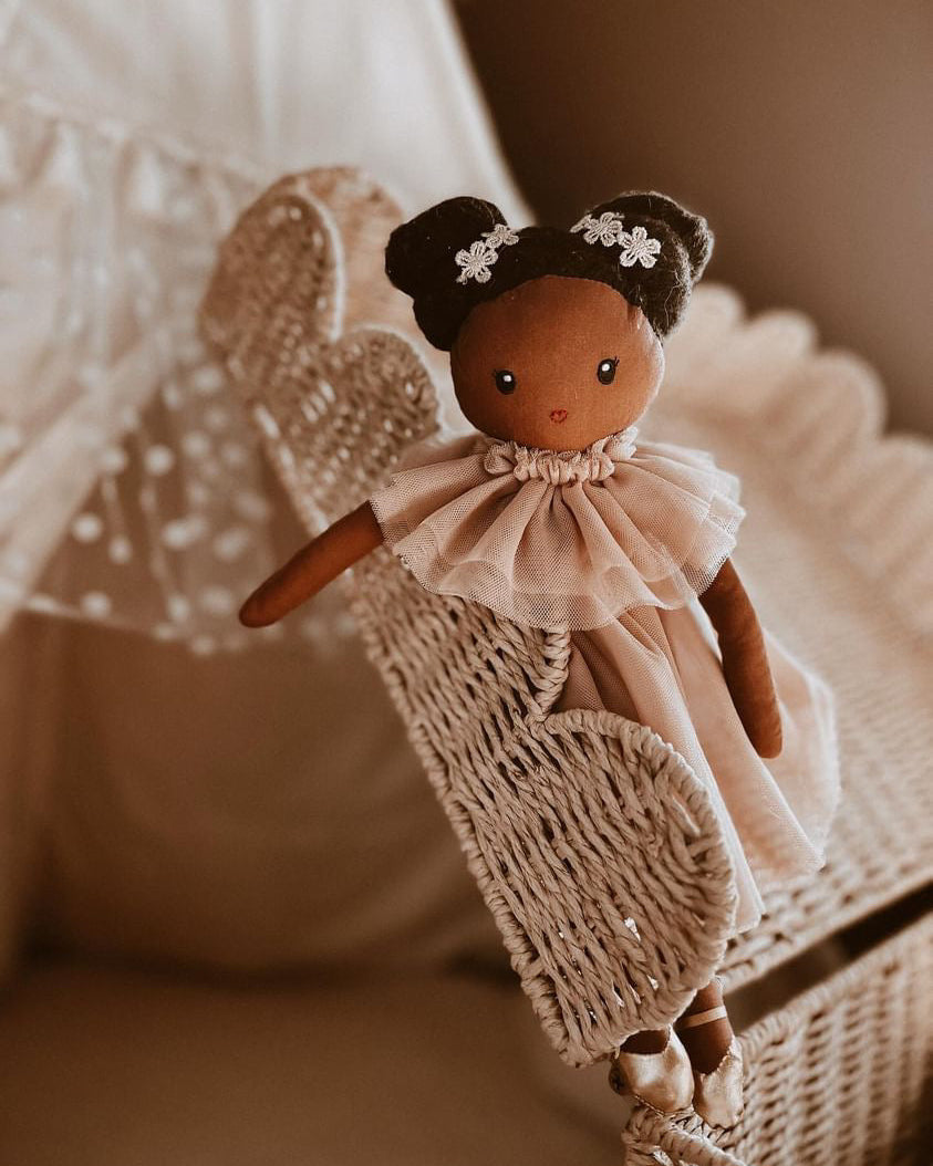 Le nostre bambole sono realizzate a mano in cotone al 100%. I vestiti sono in tulle e... Questi possono essere rimossi dalla bambola, così come i calzini e le mutande. Un pezzo che farà parte dai giochi dei più piccoli affinché possano dare ali alla loro fantasia.